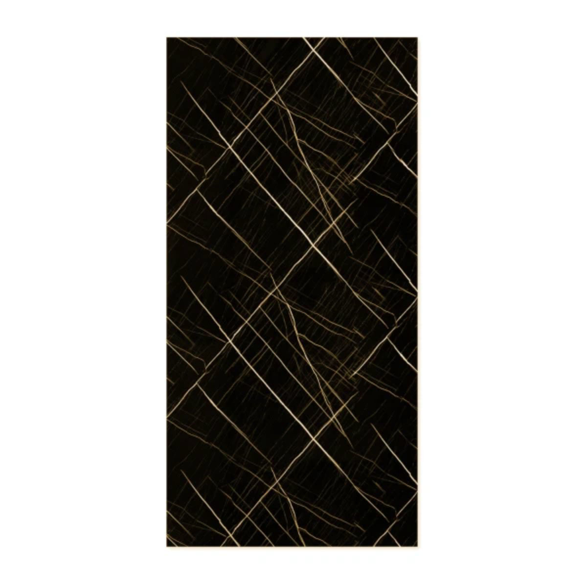 La placa de PVC Mármol Negro Gold combina un fondo negro profundo con delicadas vetas doradas, logrando un acabado elegante y de alto impacto visual.