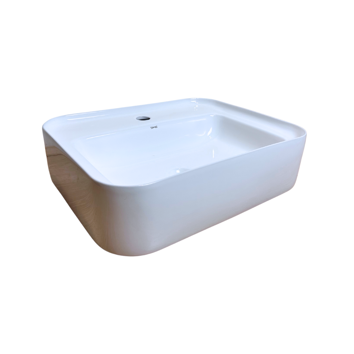Diseño funcional con estilo contemporáneo.Bacha de apoyo rectangular en loza blanca con terminación brillante. Su formato con mesa lateral ofrece una solución práctica y estética para baños modernos.