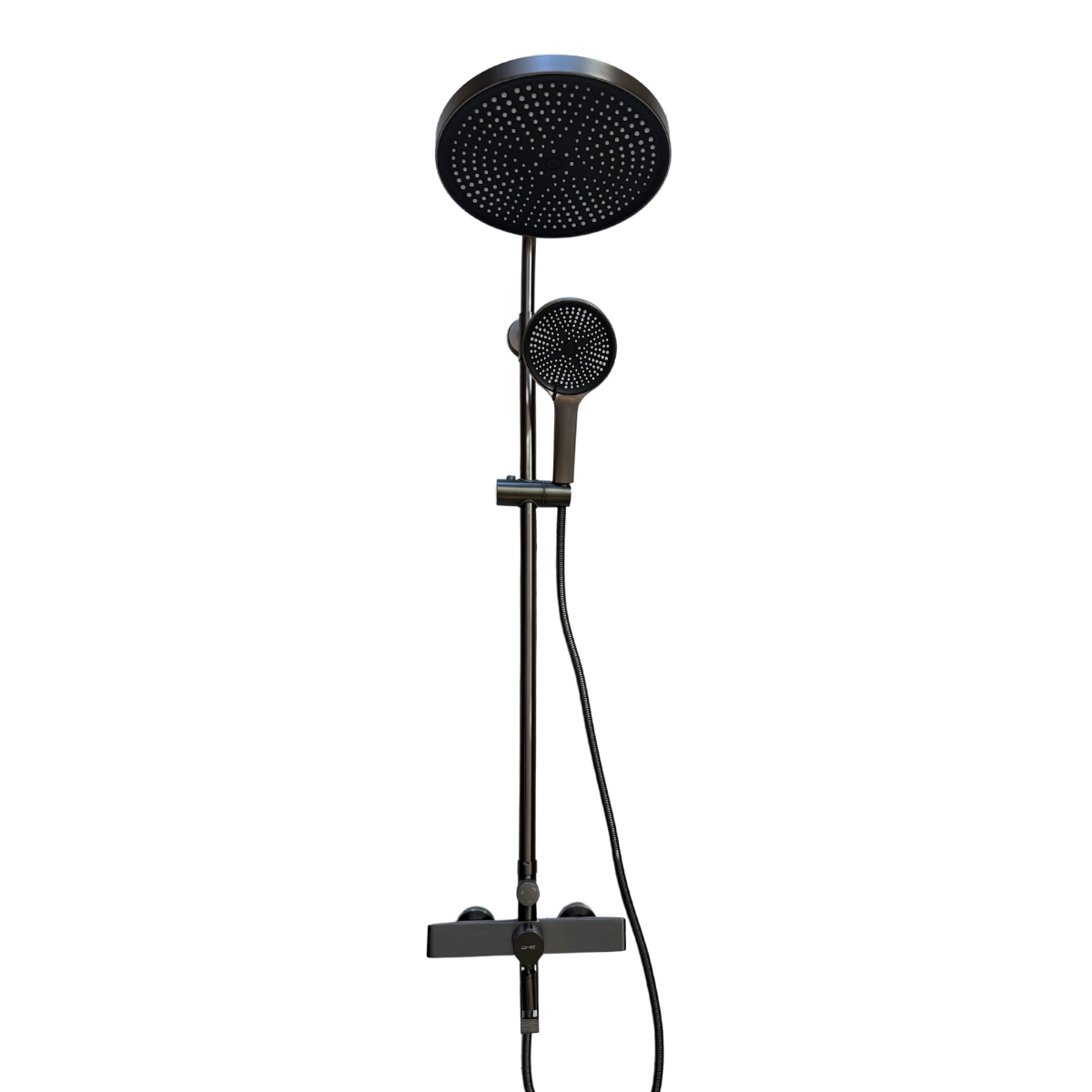 El barral de ducha exterior Elar en terminación grafito combina tecnología, diseño y confort. Con cuerpo de bronce, sistema monocomando con transferencia y detalles ajustables, brinda una experiencia completa y duradera. Su acabado grafito aporta una estética moderna y sobria, ideal para baños contemporáneos.