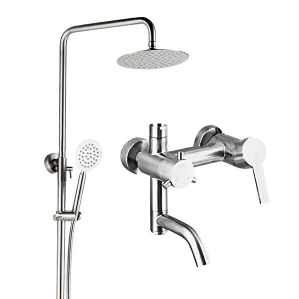 Características - Sistema monocomando exterior con transferencia: permite elegir entre ducha de techo o ducha de mano de forma práctica.- Ducha de techo 8": cobertura envolvente para una experiencia tipo lluvia.- Ducha de mano de acero inoxidable: versátil y cómoda, ideal para una limpieza dirigida.- Cartucho cerámico 35 mm con aireador: mayor precisión y ahorro de agua.- Barra Deslizante 0.5 mm 1100 mm.- Flexibles de 1,5 m: mayor alcance y libertad de movimiento.- Acabado Gris satinado cepillado: estética sobria, moderna y fácil de combinar con distintos estilos de baño.- Fabricado en acero inoxidable 304 de alta calidad.- 1 años de garantía, porque tu tranquilidad es nuestra prioridad.