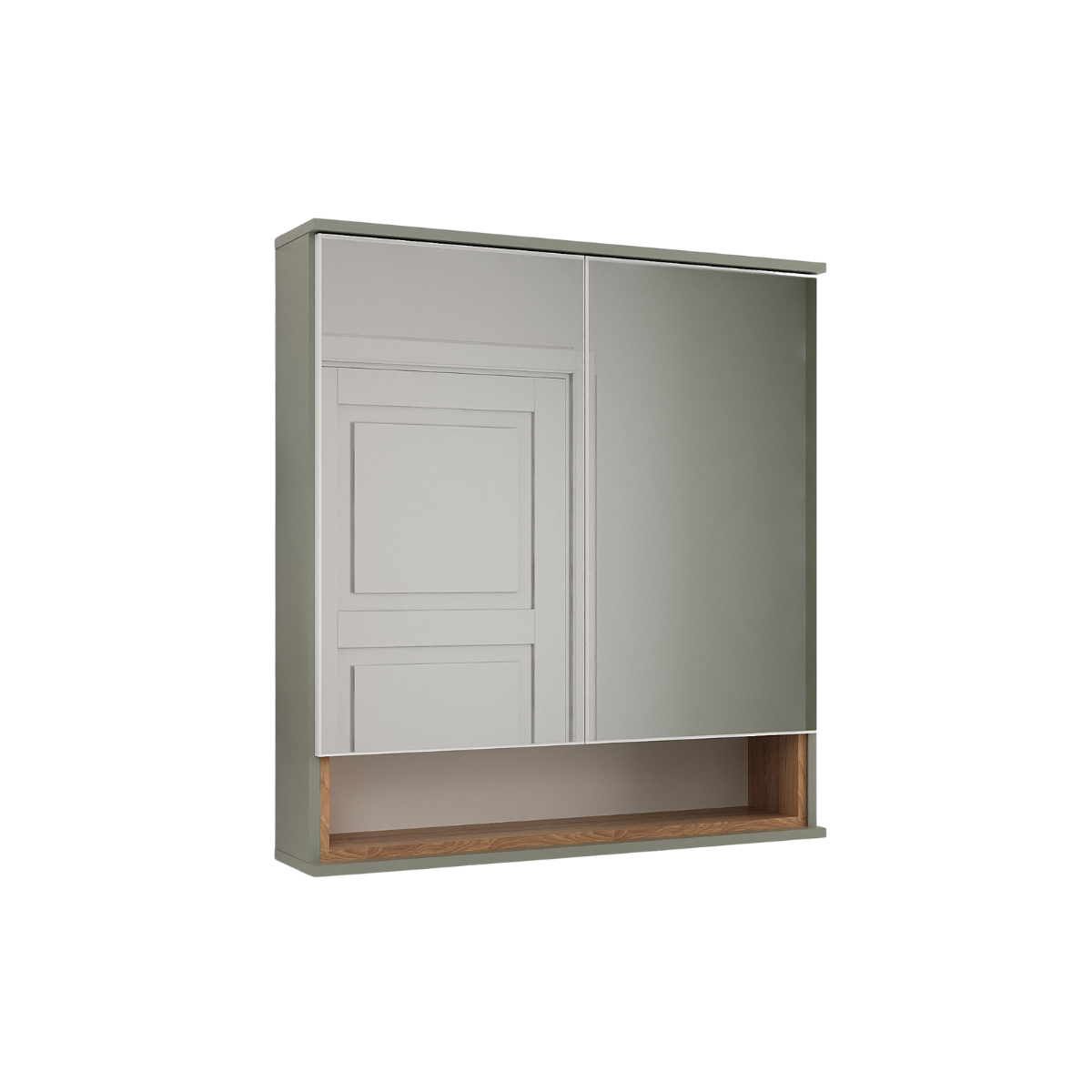 Características- Diseño moderno con inspiración natural: Ideal para sumar calidez al ambiente.- 2 puertas con espejo: Aportan amplitud visual y son perfectas para el uso diario.- Estantes internos: Organización eficiente para artículos de higiene y cuidado personal.- Revestimiento laminado y cantos en PVC: Duradero y resistente a la humedad.- Instalación suspendida (colgante): Fácil de montar y práctico para limpiar.