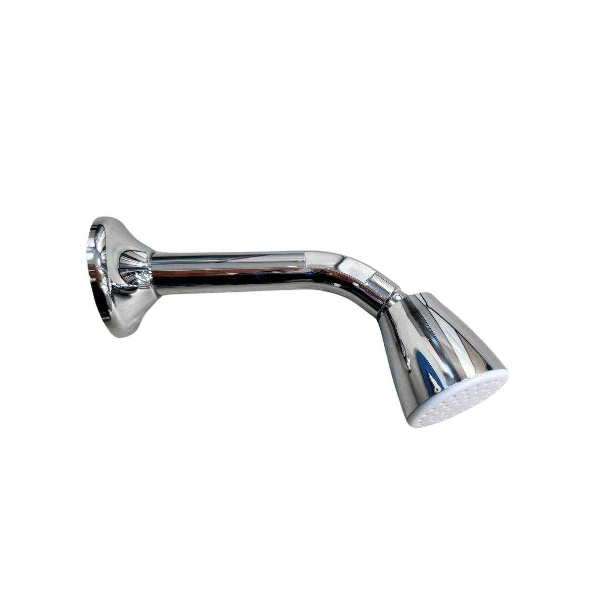 Fabricado en plástico ABS.Terminación: Cromado BrillanteMedidasDiámetro de la roseta: 5 cm Largo total: 20 cm Rosca de 1/2" con tapajunta de 6 cm de diámetro.
