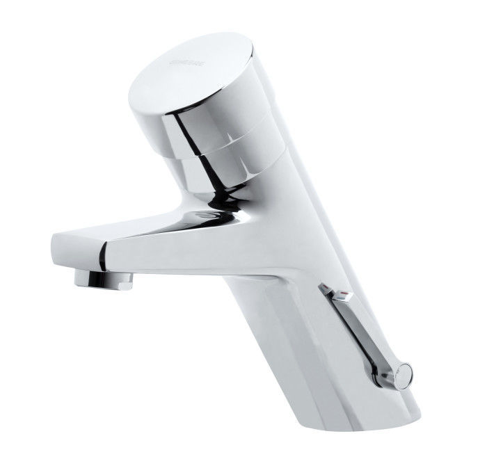 Grifo de lavabo temporizado mezclador para instalar en la mesada. Dotado de un cartucho de cierre automático temporizado de 7 a 10 segundos y de un mezclador manual en latón. Provisto de un aireador antivandálico plástico antical y un filtro plástico antipartículas. Incluye válvulas antirretorno y conexiones flexibles.