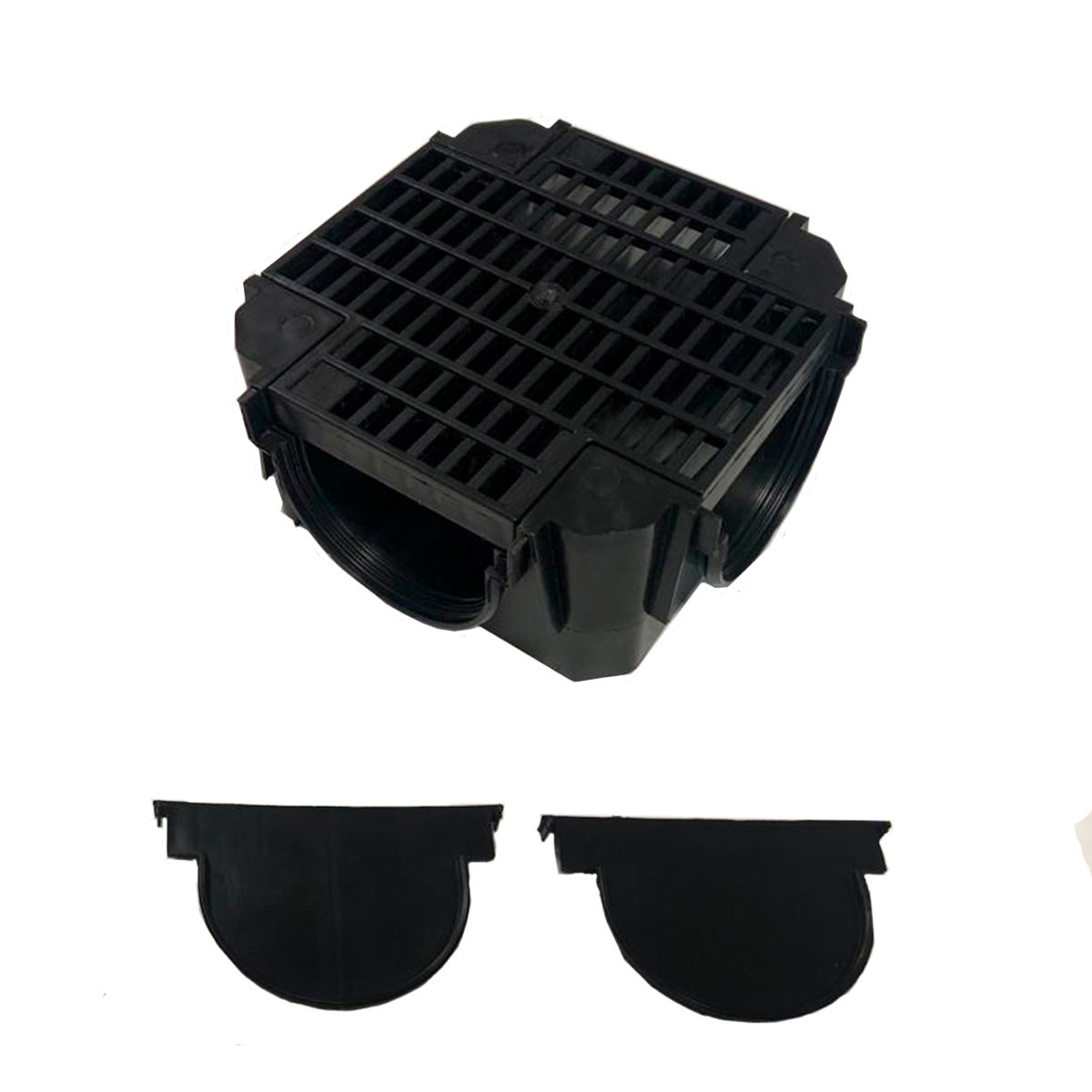 El mismo incluye dos tapas en el caso de formar un desagüe en forma de L o T.