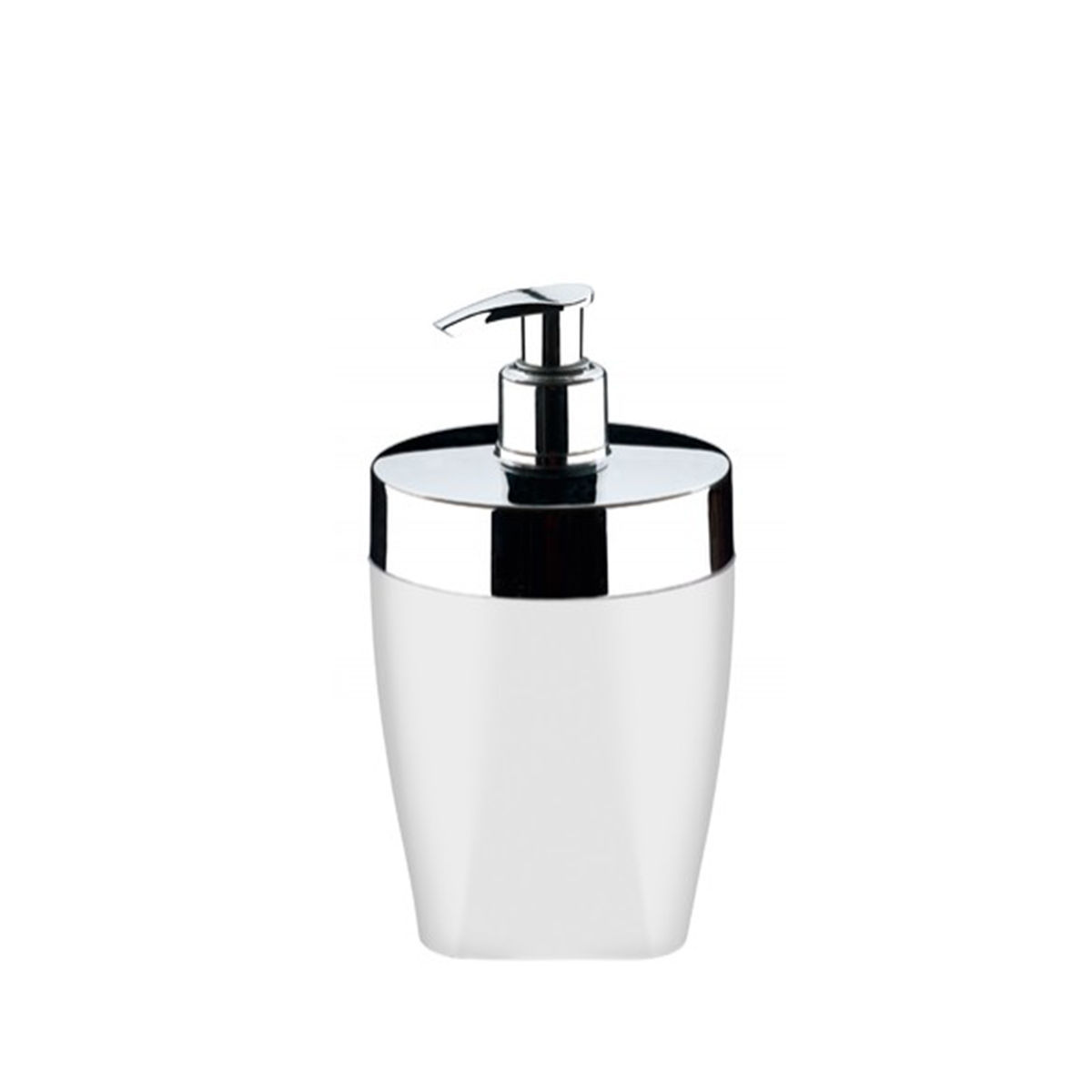 El Jabonera Líquida tiene una capacidad de 400ml y una tapa cromada que aporta elegancia y sofisticación.La válvula dosificadora del Jabonera Líquida evita que se derrame el exceso de jabón líquido al usarlo, generando ahorro y manteniendo limpio el lavabo del baño.Medidas: Fondo: 9cm / Ancho: 9cm / Alto: 1.6cm / Peso: 0.138kgMateria prima: PlásticoColor/Acabado: Blanco/CromoCapacidad: 400mlLínea: CristalConsejos de uso:- Para la limpieza periódica se recomienda utilizar un paño suave, agua y jabón neutro.- Nunca utilice materiales abrasivos, lana de acero, esponjas ásperas, disolventes o productos químicos corrosivos (cloro, lejía).Artículos incluidos: 1 soporte para jabón líquido.
