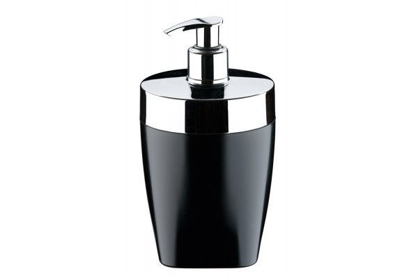 El Jabonera Líquida tiene una capacidad de 400ml y una tapa cromada que aporta elegancia y sofisticación.La válvula dosificadora del Jabonera Líquida evita que se derrame el exceso de jabón líquido al usarlo, generando ahorro y manteniendo limpio el lavabo del baño.Medidas: Fondo: 9cm / Ancho: 9cm / Alto: 1.6cm / Peso: 0.138kgMateria prima: PlásticoColor/Acabado: Negro/CromoCapacidad: 400mlLínea: CristalConsejos de uso:- Para la limpieza periódica se recomienda utilizar un paño suave, agua y jabón neutro.- Nunca utilice materiales abrasivos, lana de acero, esponjas ásperas, disolventes o productos químicos corrosivos (cloro, lejía).Artículos incluidos: 1 soporte para jabón líquido.
