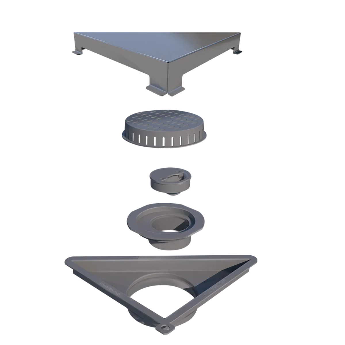 Base de altura reducida que evita cortes en la losa durante la instalación.