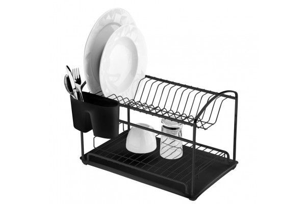 Belleza y funcionalidad en la mesada de la cocina.Escurreplatos con bandeja. El escurridor tiene capacidad para 16 platos y ofrece amplio espacio de almacenamiento en la parte inferior. El portacubiertos es de plástico y extraíble.Acabado liso y mate. El recubrimiento en polvo garantiza una excelente protección contra la corrosión y una alta resistencia al impacto.Medidas: Fondo: 40cm / Ancho: 25cm / Alto: 27cm / Peso: 1.410kgMateria prima: Acero al carbono + PlásticoColor/Acabado: Negro mate + NegroCapacidad: 16 placasLínea: AtualleConsejos de uso:- Para la limpieza periódica, recomendamos utilizar un paño suave, agua y jabón neutro.- No utilice nunca materiales abrasivos, lana de acero, esponjas ásperas, disolventes o productos químicos corrosivos (cloro, lejía).Artículos incluidos: 1 Escurreplatos + 1 Portacubiertos de Plástico + 1 Bandeja de Plástico