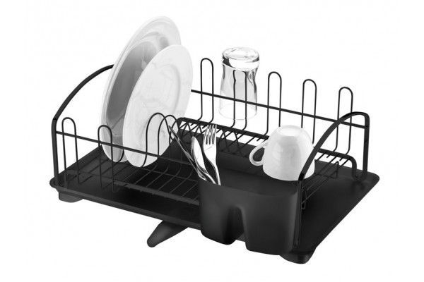 Belleza y funcionalidad en la mesada de la cocina.El kit perfecto para mantener tu fregadero seco y limpio: Escurreplatos con bandeja. La bandeja cuenta con un pico que se abre y se cierra para facilitar el vaciado. El escurridor tiene capacidad para 10 platos y 8 vasos, y el portacubiertos es de plástico y extraíble.Acabado liso y mate. El recubrimiento en polvo garantiza una excelente protección contra la corrosión y una alta resistencia al impacto.Medidas: Fondo: 47cm / Ancho: 35cm / Alto: 17cm / Peso: 1.400kgMateria prima: Acero al carbono + PlásticoColor/Acabado: Negro Mate + NegroCapacidad: 10 platos y 8 vasosConsejos de uso:- Para la limpieza periódica, recomendamos utilizar un paño suave, agua y jabón neutro.- No utilice nunca materiales abrasivos, lana de acero, esponjas ásperas, disolventes o productos químicos corrosivos (cloro, lejía).Artículos incluidos: 1 Escurreplatos + 1 Portacubiertos de Plástico + 1 Bandeja de Plástico