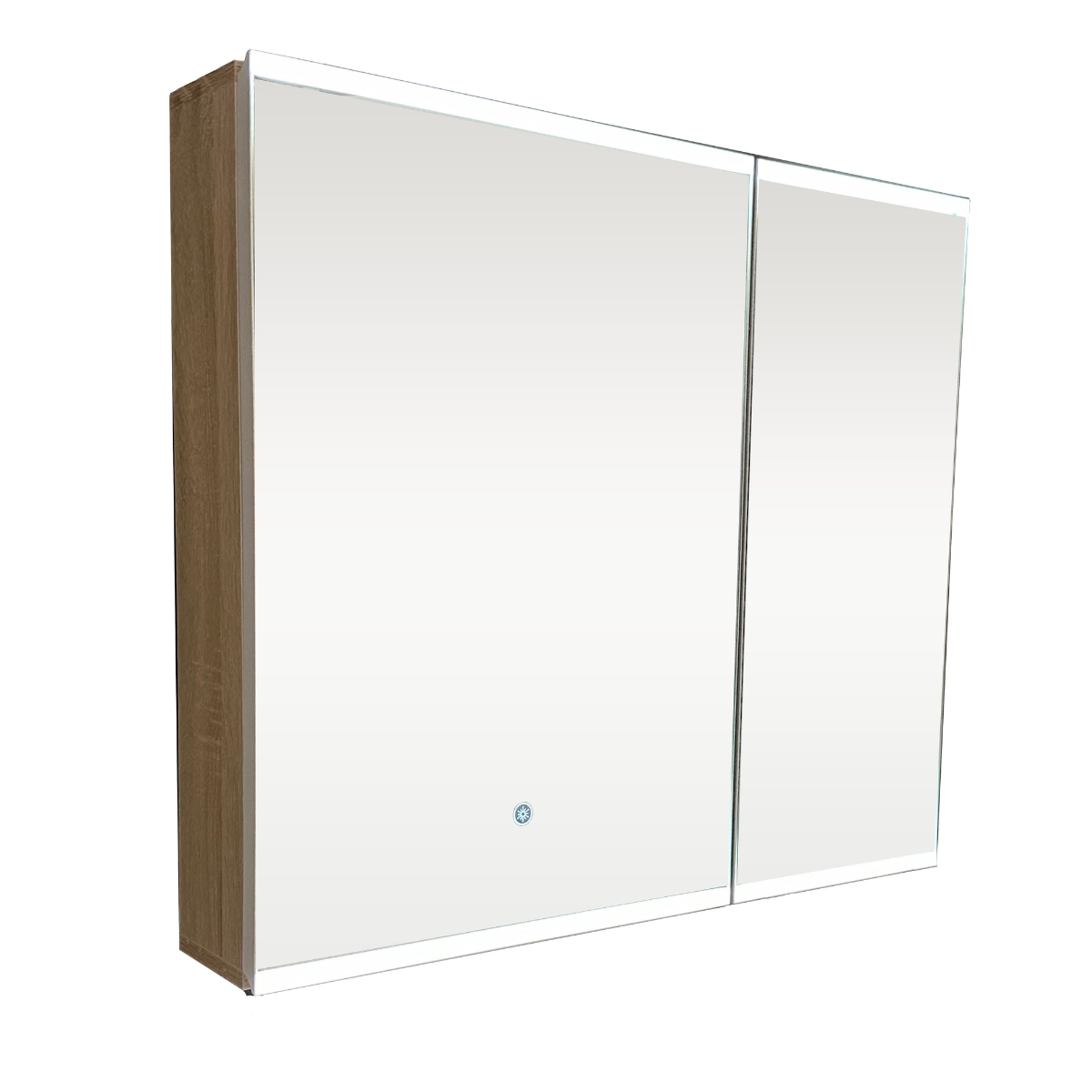 Botíquin fabricado en MDF con enchufe a 220 para luz led.Color: Oak.2 puertas y 2 estantes.Luz led con botón de encendido en espejo.