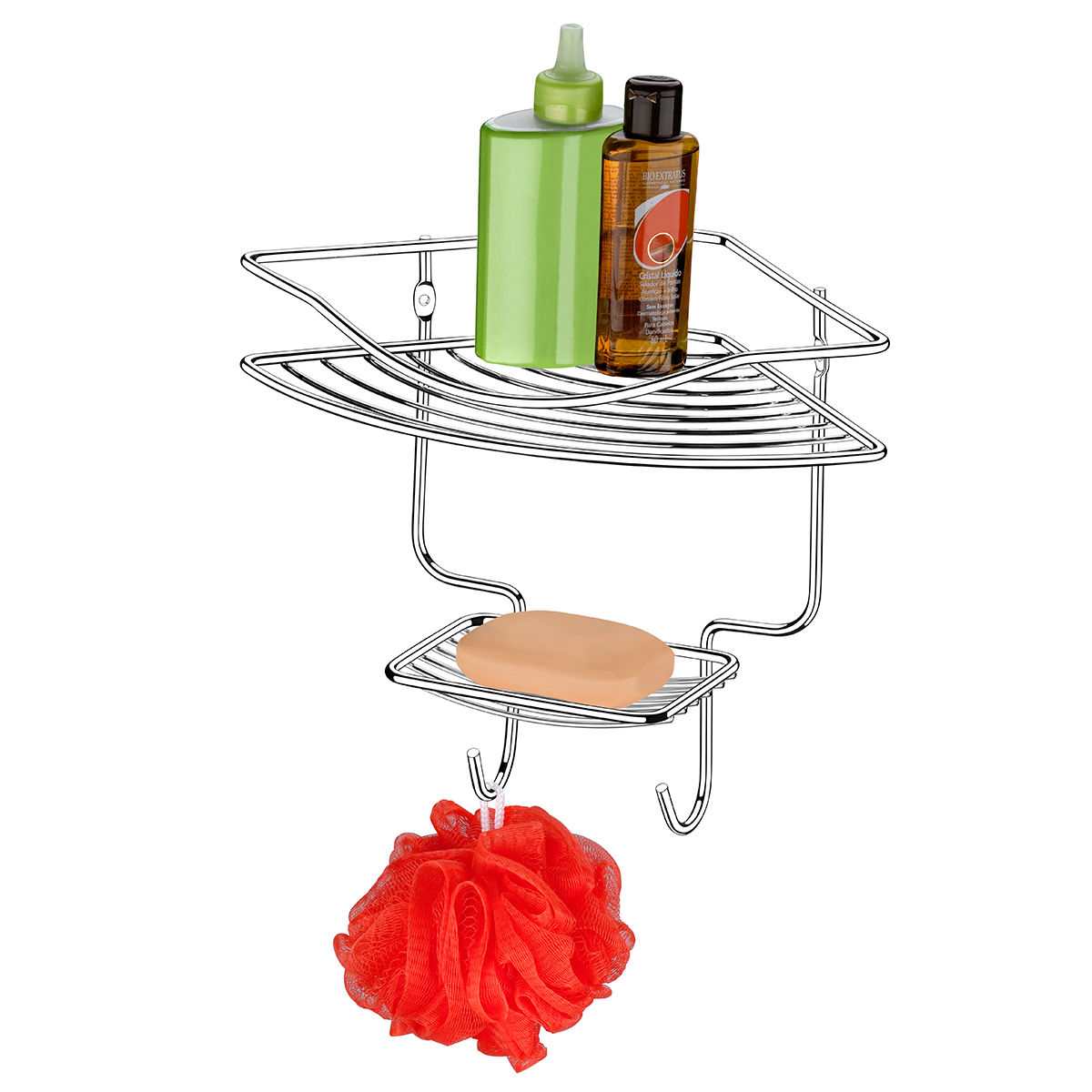 El porta champú de esquina ya viene con un lugar específico para el jabón y dos ganchos para colgar la esponja de baño.Además del tratamiento de superficie tradicional de Future, donde se aplican hasta 4 capas de metal, los productos se recubren con una capa adicional del agente protector especial Rust Free, lo que garantiza colores brillantes y vivos, así como una mayor resistencia al óxido.Medidas: Fondo: 20cm / Ancho: 20cm / Alto: 22cm / Peso: 0.400kgMateria prima: Acero al carbonoColor/Acabado: CromoLínea: SuperiorConsejos de uso:- Para la limpieza periódica, recomendamos utilizar un paño suave, agua y jabón suave.- No utilizar nunca materiales abrasivos, lana de acero, esponjas ásperas, disolventes o productos químicos corrosivos (cloro, lejía).Artículos incluidos: 1 soporte de esquina + 1 kit de fijación