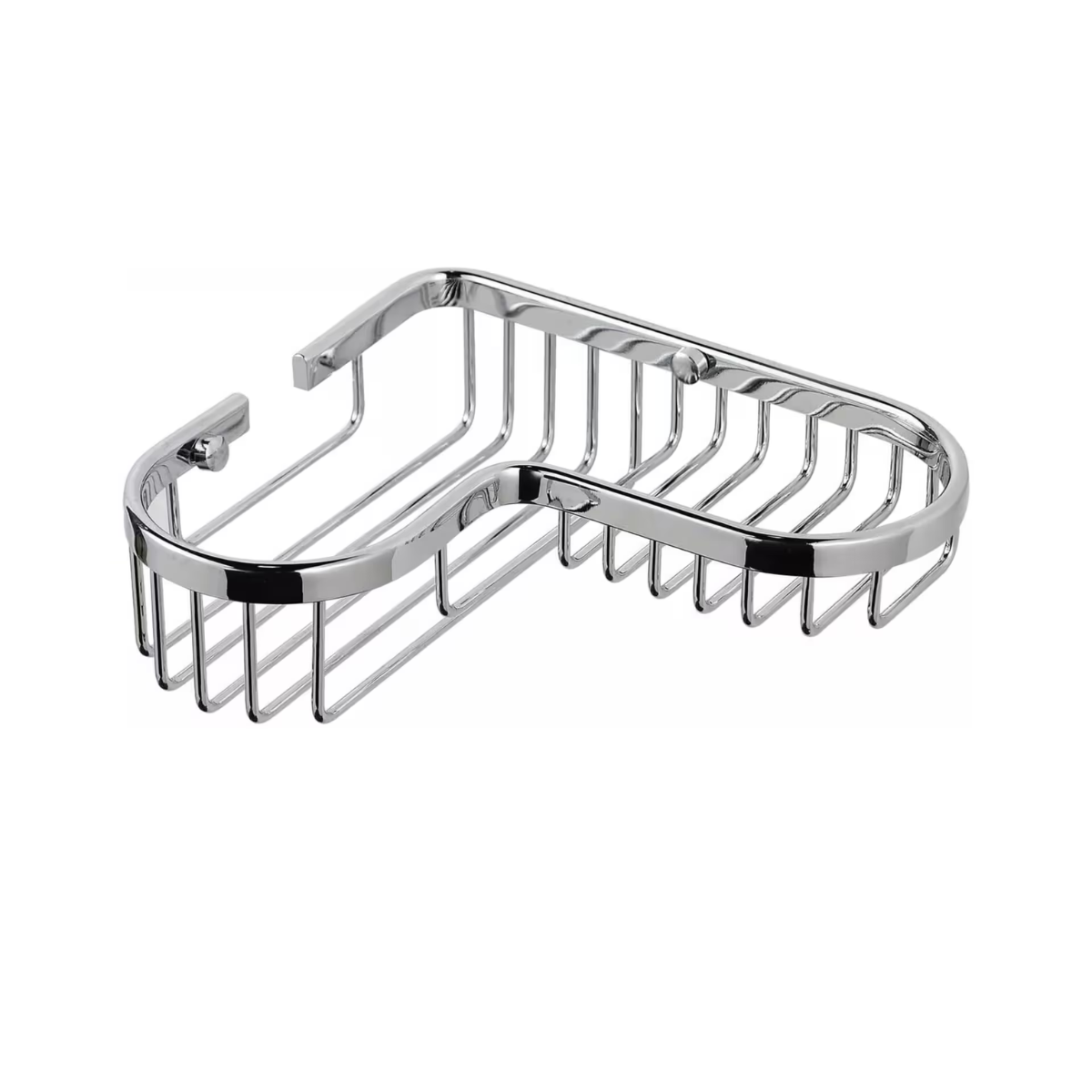 Canasto organizador de baño fabricado en Bronce en forma en L con bordes redondeados.. Diseño elegante, práctico y duraderoMaterial super resistente y terminación Cromado Brillante. Incluye tornillos, tarugos y embellecedores para amurar