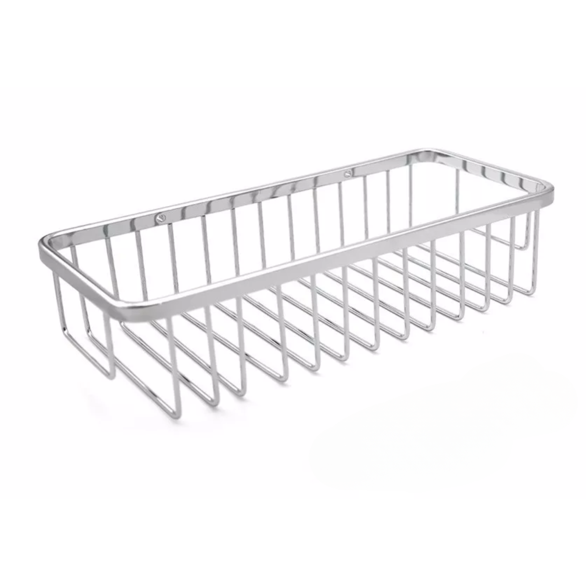 Canasto organizador de baño rectangular fabricado en Bronce. Diseño elegante, práctico y duraderoMaterial super resistente y terminación Cromado Brillante. Incluye tornillos, tarugos y embellecedores para amurar