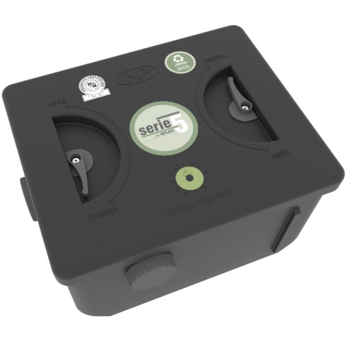 Grasera aprobada Inplast con tapa entera SERIE 5HERMETICIDAD:La tecnología avanzada de sellado, mediante un cordón de goma en forma de U en todo el perímetro de la superficie de contacto entre la pestaña de la tapa y el interceptor. Garantiza una estanqueidad total, evitando cualquier fuga y asegura un funcionamiento sin problemas.EFICIENCIA Abre/CierraCuenta con un sistema mecánico de levas que al girar 180 ° sus mandos, logrará una muy fácil apertura, como también un eficaz y completo cierre del interceptor.LIMPIEZA:Su diseño logra duplicar el área de limpieza, brindando un cómodo acceso a la zona de aseo.