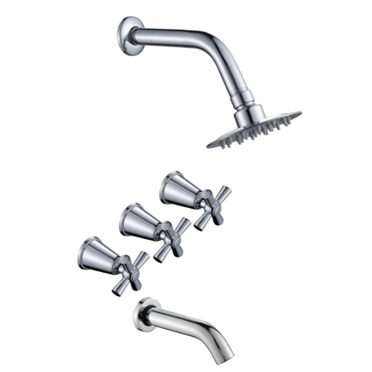 Características- Cuerpo fabricado en bronce: máxima resistencia y vida útil prolongada.- Mandos de bronce en cruz: diseño ergonómico para un manejo cómodo y preciso.- Brazo y roseta de acero inoxidable: alta resistencia a la humedad y a la corrosión.- Cabezal con cierre cerámico: movimiento suave y cierre perfecto sin goteos.- Incluye cabezal con cierre a compresión de repuesto: práctico para prolongar la vida útil del conjunto.- Cabezal de ducha redondo: cobertura uniforme para una experiencia de baño placentera.- Pico de bañera cromado: ideal para instalaciones mixtas de ducha y llenado de bañera.- 5 años de garantía, porque tu tranquilidad es nuestra prioridad.