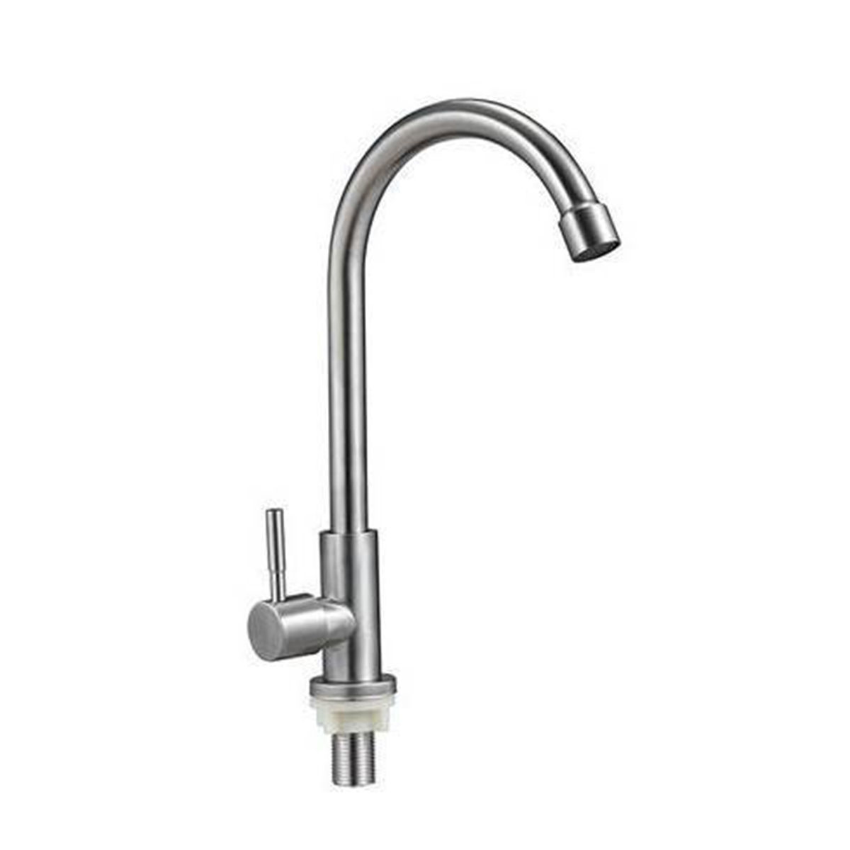 Grifo Unitario de CocinaMaterial : Acero InoxidableAltura total: 27 cm.Avance: 17 cm.Altura cómoda: El grifo de lavado a mano de agua fría gira 360° y cuenta con una altura de salida ajustable. agua moderada, permite que el flujo de agua llegue a cada parte del fregadero, facilitando la limpieza.Robusto y duradero: El grifo monomando de cocina fría está fabricado en acero inoxidable 304. Los materiales y la tecnología de alta calidad garantizan la durabilidad, la seguridad y el confort del producto.Bajo nivel de ruido: El grifo frío tiene un aireador de alta calidad, sin salpicaduras, sin ruidos, el aireador es desmontable, fácil de limpiar y reemplazar.