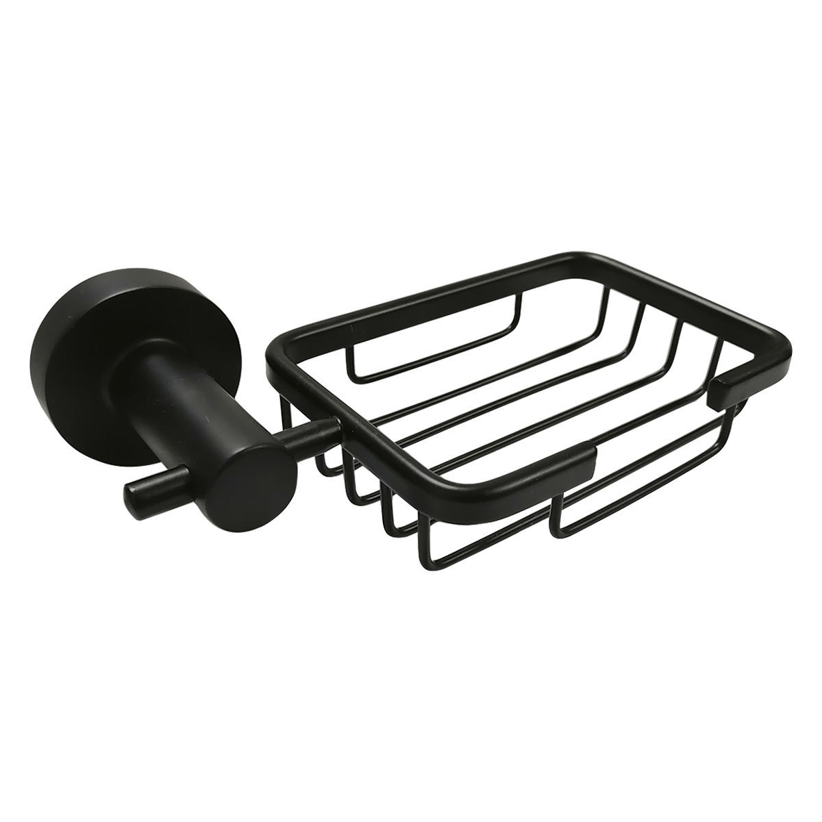 Características - Diseño tipo reja: Permite un mejor drenaje del jabón, evitando acumulación de agua y prolongando su duración.- Fabricada en metal resistente: Durabilidad asegurada frente a la humedad y el uso diario.- Acabado negro mate: Un acabado elegante que aporta modernidad y combina con diferentes estilos de grifería y accesorios.- Fijación a pared: Incluye soporte para amurar, garantizando una instalación firme y segura. Ideal para aprovechar mejor el espacio.