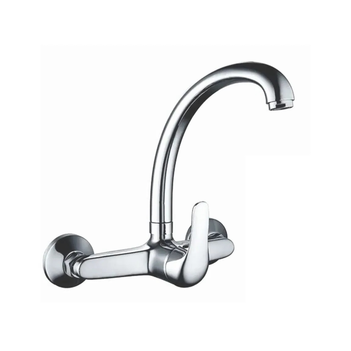 Optimizá el espacio de tu cocina con esta grifería de pared de diseño elegante y funcional. Su pico alto brinda mayor comodidad para lavar ollas y utensilios grandes, mientras que su acabado cromado brillante aporta un toque moderno y sofisticado. Ideal para cocinas prácticas y con estilo.