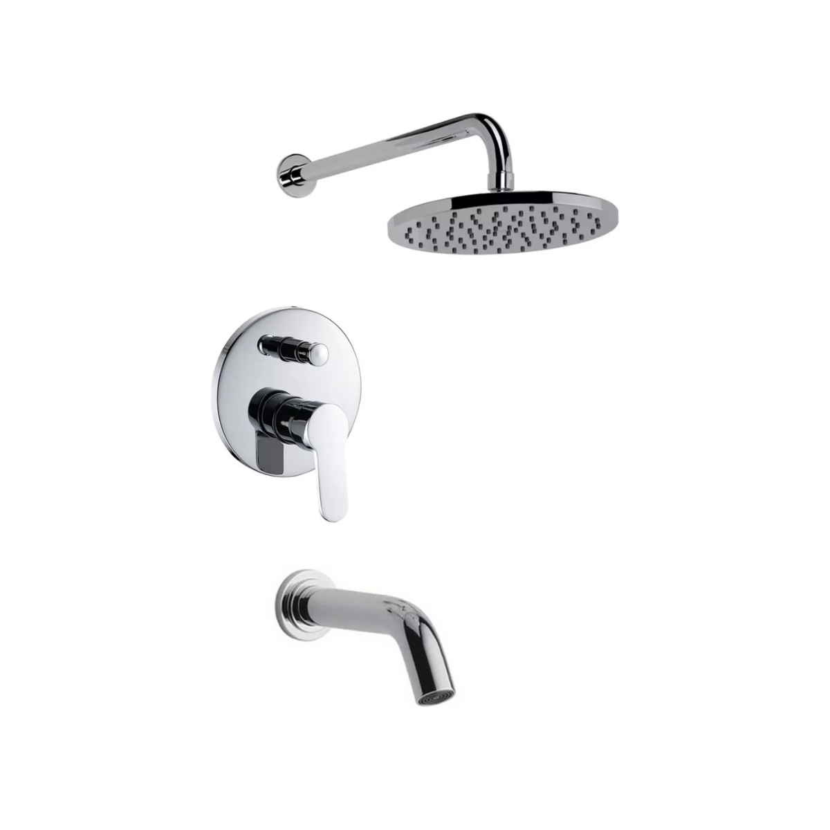 Ducha de embutir Milano Cromo.Material: bloque interior bronce, Acero tratado y plástico abs (roseta y teléfono)Cartucho Cerámico 35 mmRoseta de 20 cm de diámetro y pico de transferencia.5 años de garantía.