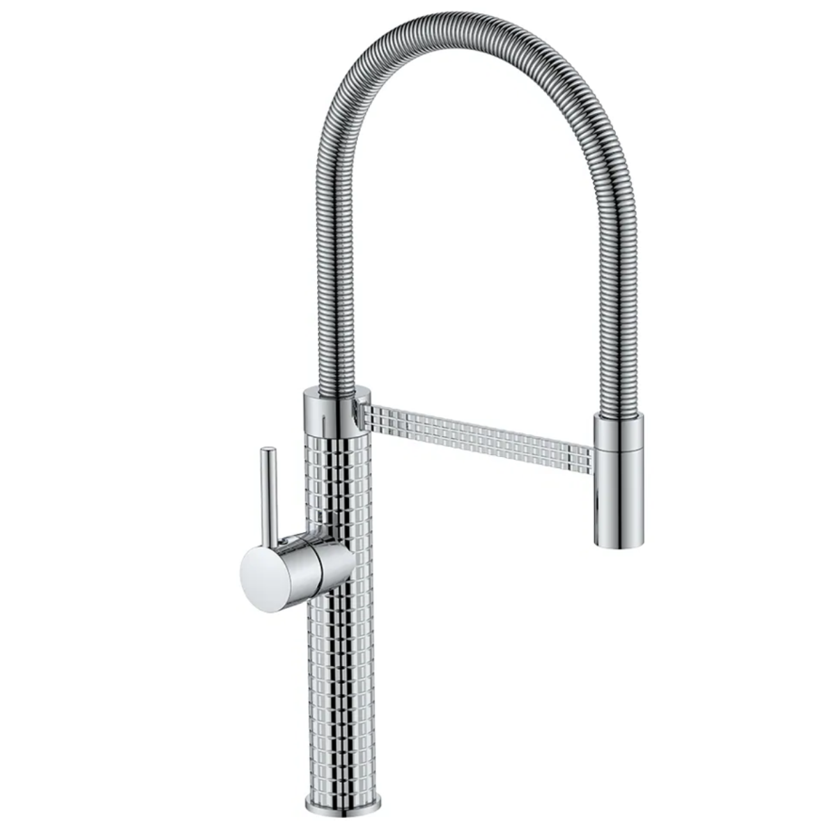 La grifería de cocina Chef Cromo está diseñada para quienes buscan funcionalidad avanzada sin perder la estética atemporal del acabado cromado. Su estructura giratoria y pico extraíble ofrecen practicidad total, ideal para cocinas modernas y exigentes.