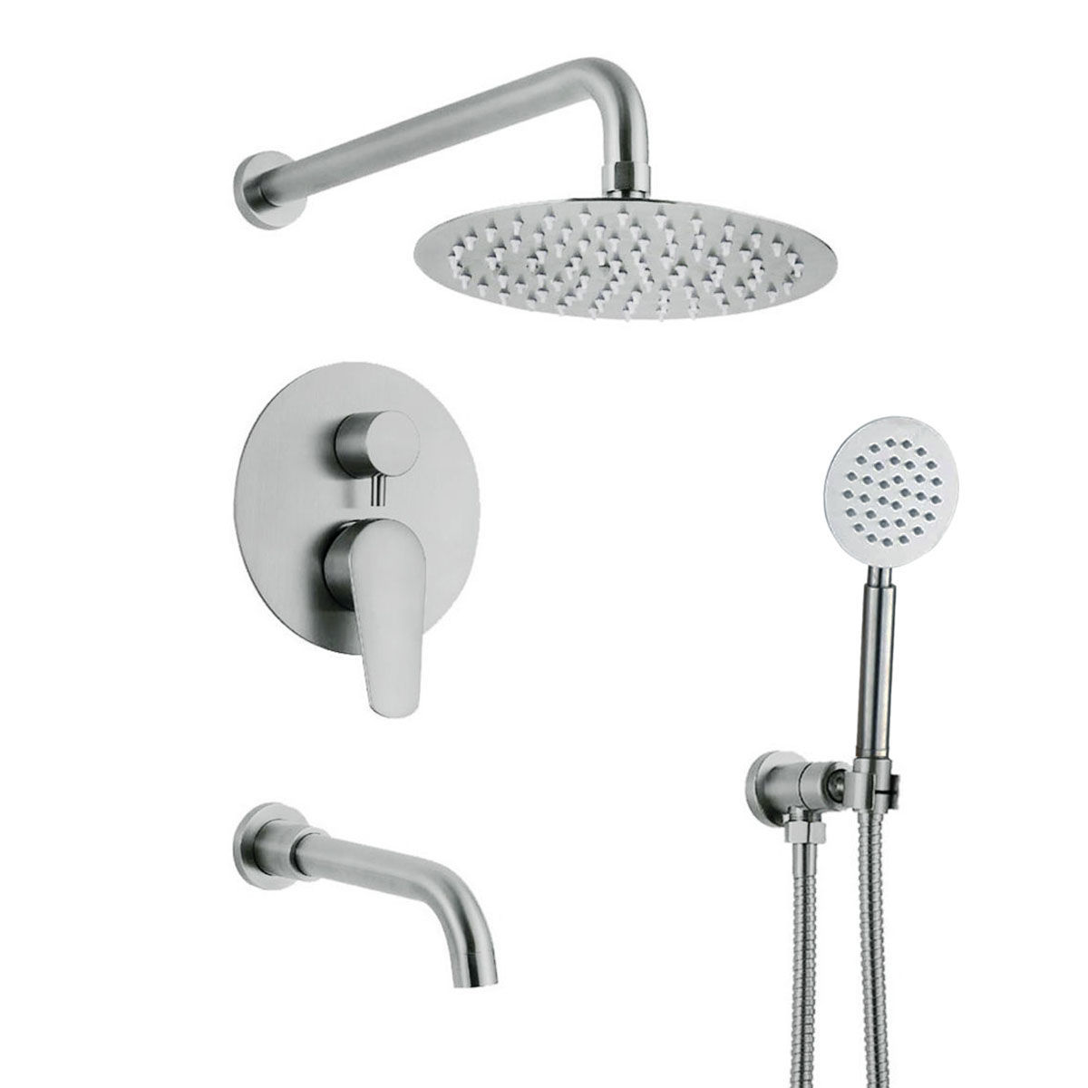 - Monocomando de bañera de embutir con transferencia y teléfono.- Cartucho cerámico de 35 mm para un control preciso del caudal.- Material: Acero inoxidable 304, resistente y duradero.- Acabado gris satinado: elegante, moderno y fácil de mantener.- Roseta de 20 cm de diámetro y brazo de 40 cm de largo.- Pico de transferencia de 22 cm con aireador.- Soporte para teléfono de ducha con regulador de ángulo.- Teléfono de ducha con 10 cm de diámetro.- Diámetro de base del monocomando: 18 cm.- Profundidad del cuerpo: 8,5 cm.- Garantía: 5 años, porque tu tranquilidad es nuestra prioridad.