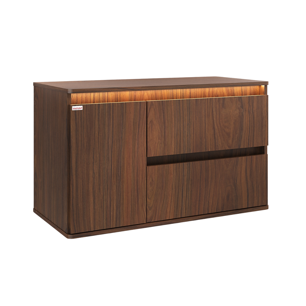 Diseño moderno con funcionalidad y calidez.El mueble Adelaida combina elegancia y practicidad en un formato suspendido que optimiza el espacio y facilita la limpieza. Su acabado en madera tono cacao aporta sofisticación, mientras que la iluminación LED integrada realza cada detalle, creando un ambiente cálido y contemporáneo. Ideal para quienes buscan estilo sin resignar organización.