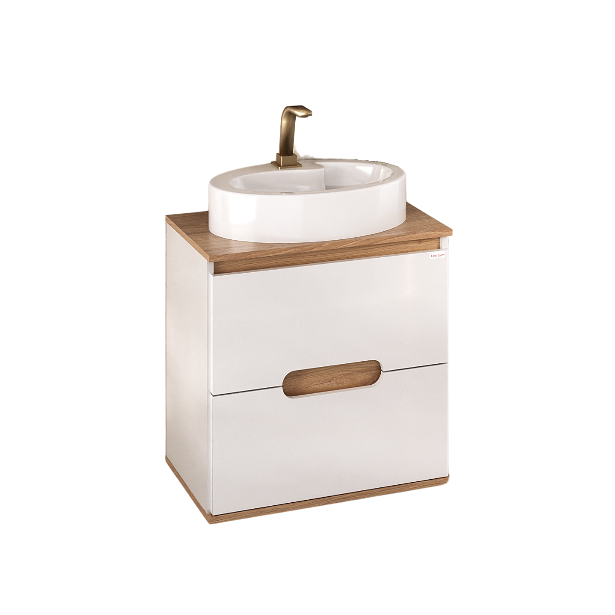 Elegancia compacta para baños modernos.Este mueble suspendido fue diseñado para optimizar espacios pequeños sin perder funcionalidad ni estilo. Su combinación en blanco y madera catedral aporta un toque sofisticado y cálido, ideal para baños contemporáneos. Los cajones de apertura total facilitan el guardado diario, mientras que el diseño suspendido permite una fácil limpieza del ambiente.Características- Diseño compacto y funcional: Ideal para baños pequeños.- Dos cajones amplios: Mayor capacidad de guardado.- Apertura total y deslizamiento suave: Comodidad y accesibilidad.- Frontal y laterales con pintura UV: Mayor resistencia al uso y al paso del tiempo.- Tiradores integrados: Estética limpia y moderna.- Cierre suave en cajones: Más confort y durabilidad.- Revestimiento laminado + canto de PVC: Terminaciones de calidad, resistentes a la humedad.Medidas- Ancho: 60 cm- Alto: 60 cm- Profundidad: 36 cmIncluye Bacha de apoyo Oval.Material: loza.Color/Acabado: blanco brillo.Medidas: 41 x 33 x 14 cm.El precio no incluye espejo, grifería ni accesorios, pero podés encontrarlas disponibles en nuestras publicaciones. ¡Consultanos y armá tu baño completo!