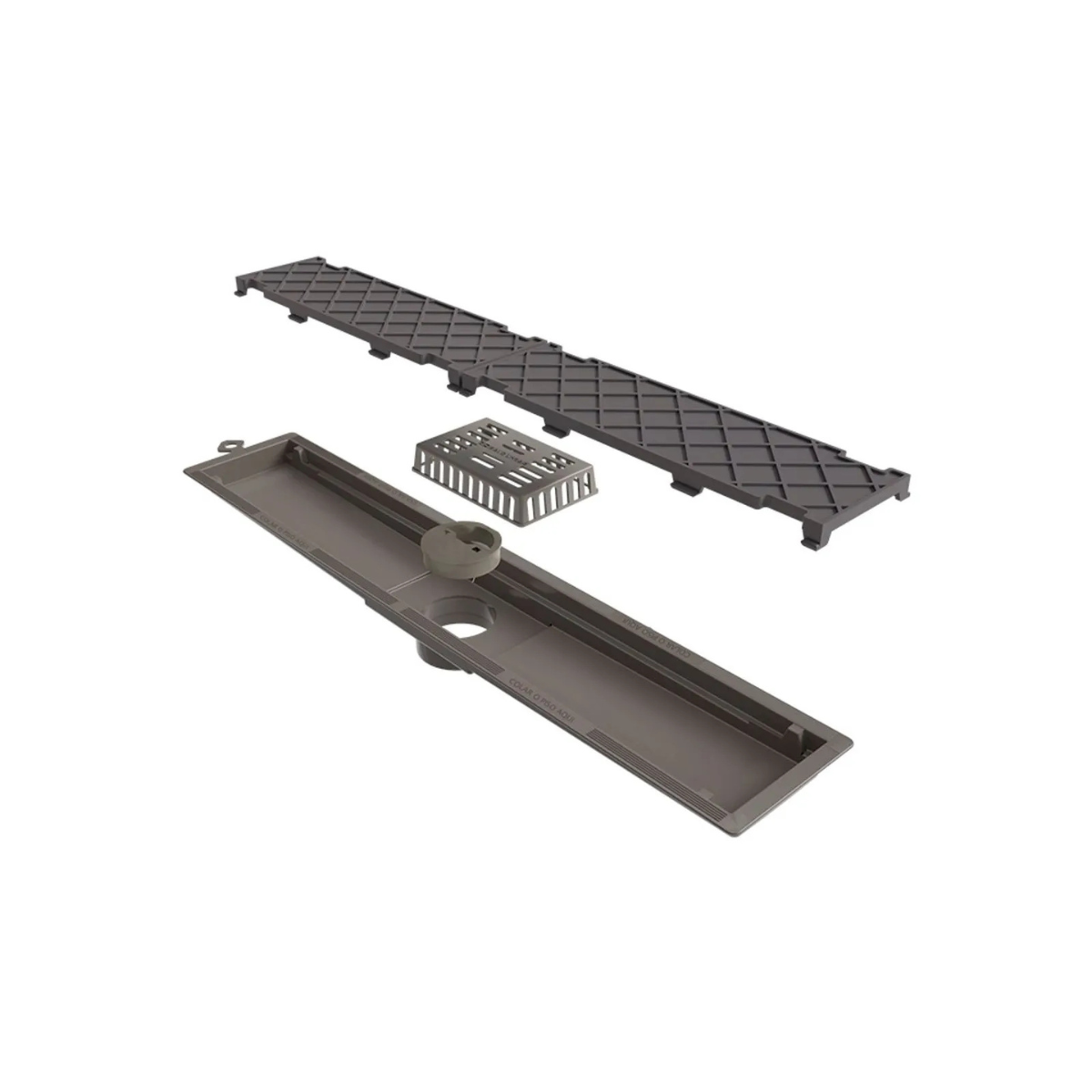 Dimensiones Al x An x Pr (mm):1 Base: 29 x 523 x 100 mm.2 Tapas: 26 x 248 x 76 mm cada una.Material: Base y Tapa de PVC.Incluye1 Base de drenaje de PVC2 Tapas ocultas de PVC extraíbles (26 x 248 x 76 mm cada una) (alto x ancho x profundidad)1 cierre de drenaje1 filtro