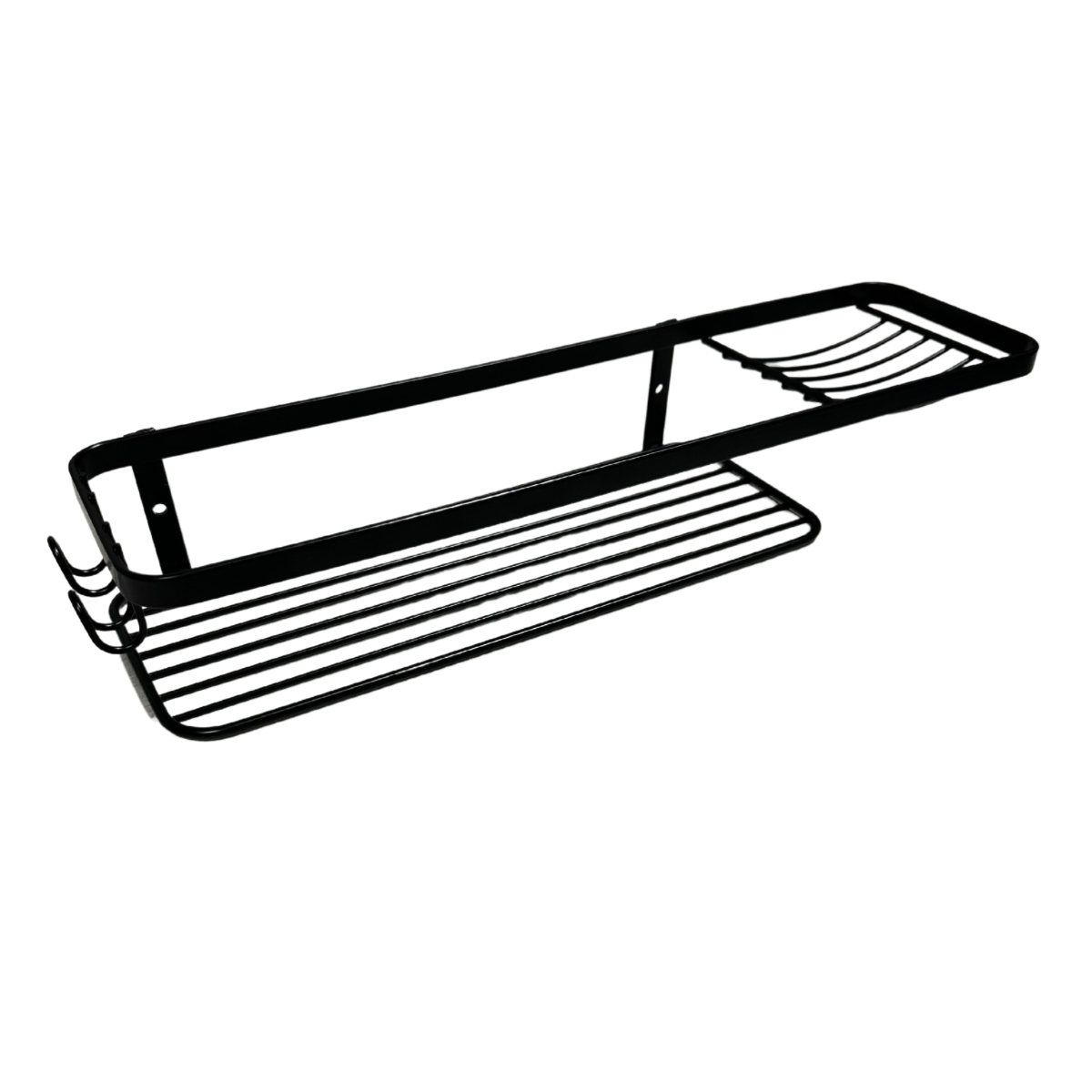 La sofisticación que tu baño necesita y la organización que tu ducha merece.Tiene suficiente espacio para champús, acondicionadores, cremas y también un lugar especial para jabón. Tiene ganchos de acero para sujetar una hoja de afeitar o colgar una esponja de baño.Además del tratamiento de superficie tradicional de Future, donde se aplican hasta 4 capas de metal, los productos se recubren con una capa adicional del agente protector especial Rust Free, lo que garantiza una mayor resistencia al óxido.Medidas: Fondo: 11cm / Ancho: 39cm / Alto: 7cm / Peso: 0,496kgMateria prima: Acero al carbonoColor/Acabado: Negro MateLínea: PerfecciónConsejos de uso:- Para la limpieza periódica, recomendamos utilizar un paño suave, agua y jabón suave.- No utilizar nunca materiales abrasivos, lana de acero, esponjas ásperas, disolventes o productos químicos corrosivos (cloro, lejía).Artículos incluidos: 1 Porta Champú/Jabón + 1 Kit de Fijación