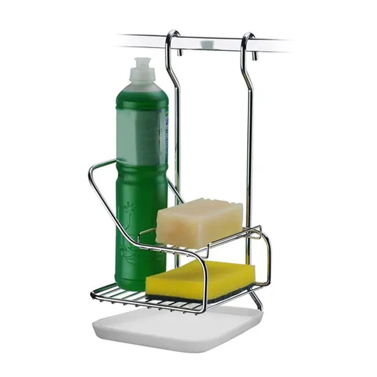 El soporte dispone de un lugar para guardar detergentes, esponjas y jabón. La bandeja recogedora de agua es fácil de quitar y limpiar.Se puede utilizar en barras de perfil tubular o plano (Piatina).Además del tratamiento superficial tradicional de Future, donde se aplican hasta 4 capas de metal, los productos están recubiertos con una capa adicional de protector especial Rust Free, garantizando colores brillantes y vibrantes, así como una mayor resistencia contra la oxidación.Medidas: Fondo: 18cm / Ancho: 16cm / Alto: 33cm / Peso: 0,568 kgMateria prima: Acero al carbono + PlásticoColor/Acabado: Cromo / BlancoLínea: Bella CucinaConsejos de uso:- Para la limpieza periódica se recomienda utilizar un paño suave, agua y jabón neutro.- Nunca utilice materiales abrasivos, lana de acero, esponjas ásperas, disolventes o productos químicos corrosivos (cloro, lejía).Artículos incluidos: 1 Soporte de acero + 1 Bandeja de plásticoBARRA NO INCLUIDA