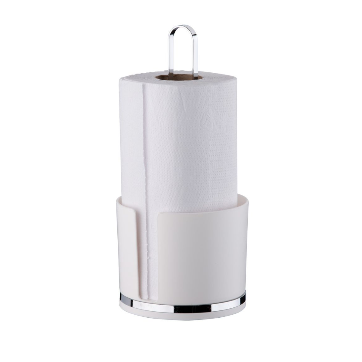 Con el Portarrollos de Papel Toallas resulta práctico tirar de las hojas sin quitar el rollo del portarrollos.Fabricado en plástico, el Portarrollos de Papel tiene un detalle de acero cromado (acero de forma plana) en la base. También dispone de un asa para facilitar su transporte desde la cocina a la mesa. La apertura permite sacar fácilmente la hoja de papel toalla para su uso, sin necesidad de retirar el rollo del soporte.Medidas: Fondo: 14cm / Ancho: 14cm / Alto: 29,5cm / Peso: 0,265kgMateria prima: Plástico + Acero al carbonoColor/Acabado: Blanco / CromoCapacidad: 1 rollo de toalla de papelLínea: EleganciaConsejos de uso:- Para la limpieza periódica se recomienda utilizar un paño suave, agua y jabón neutro.- Nunca utilice materiales abrasivos, lana de acero, esponjas ásperas, disolventes o productos químicos corrosivos (cloro, lejía).Artículos incluidos: 1 soporte para rollo de papel toalla.