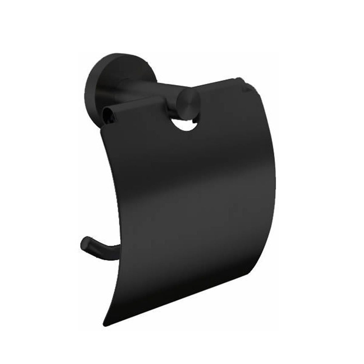 Diseño moderno con máxima practicidad.El portarollo Milano con tapa negro mate es la elección perfecta para quienes buscan un accesorio elegante y funcional. Fabricado en acero inoxidable con acabado negro mate, aporta sofisticación y durabilidad, además de mantener el rollo protegido.