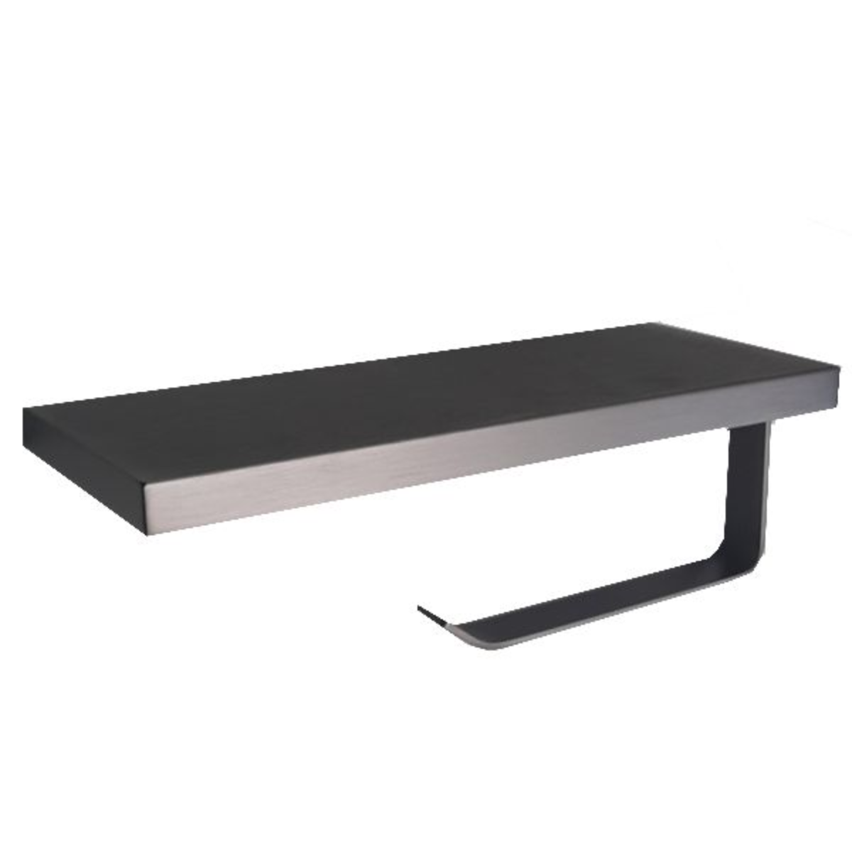 Portarrollo con repisa GrafitoFabricado en Acero Inoxidable.Superficie PVD Grafito Satinado.