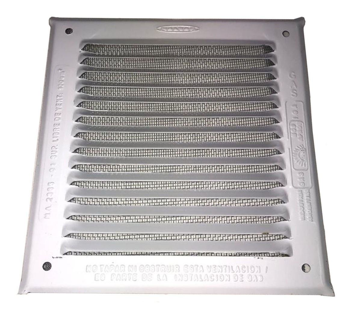 - Con mosquitero integrado: Previene la entrada de insectos sin afectar la ventilación.- Terminación esmaltada: Mayor durabilidad, resistencia a la corrosión y fácil limpieza.- Instalación práctica: Apta para amurar o atornillar en muros o superficies.- Uso versátil: Ideal para baños, cocinas, depósitos, lavaderos o ambientes con necesidad de aireación constante.- Medidas estándar: 15 x 15 cm, se adapta fácilmente a aberturas comunes.