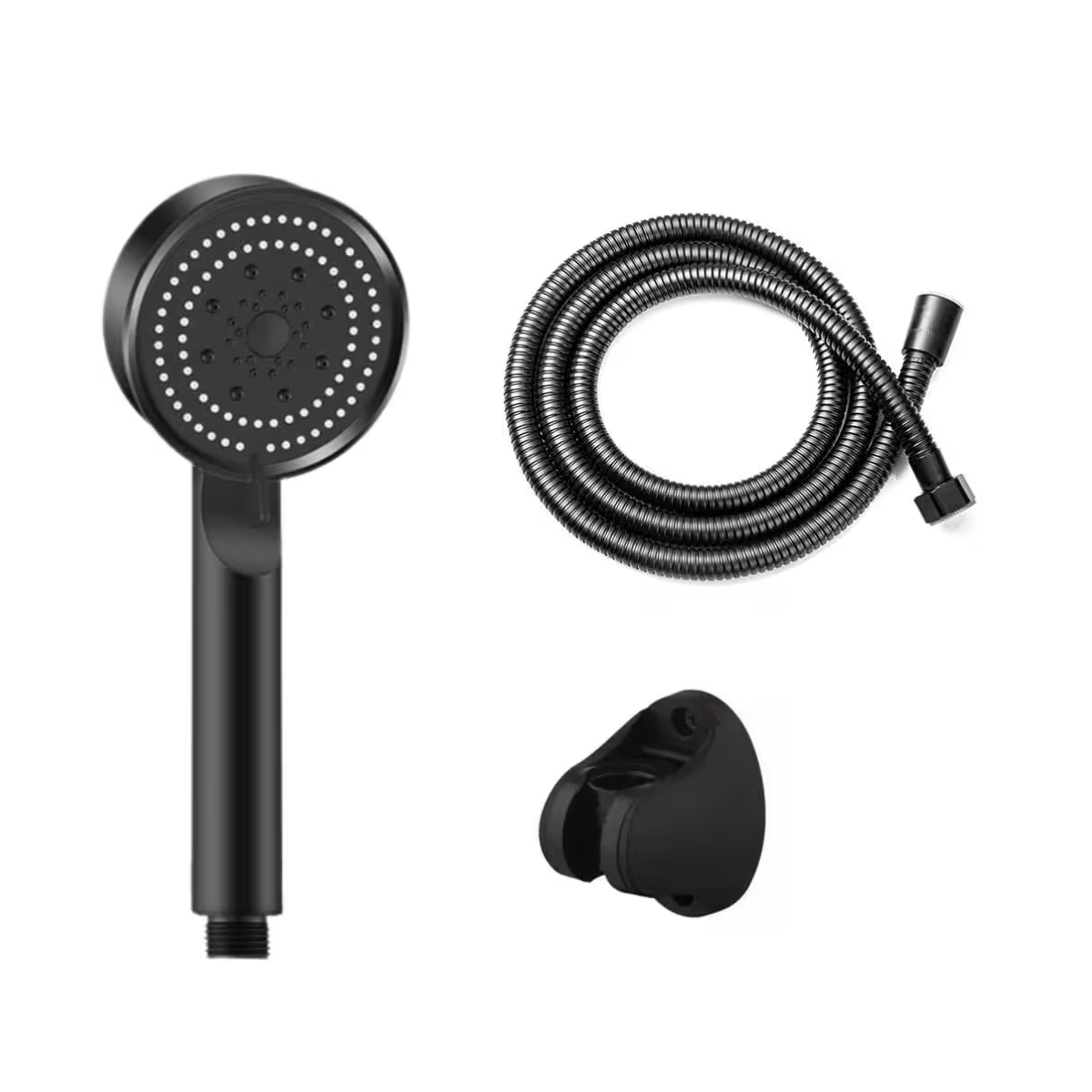 Teléfono con 3 funciones: Masajes, lluvia y lluvia + masajes. Fabricado en plástico ABS.Terminación Negro Mate.