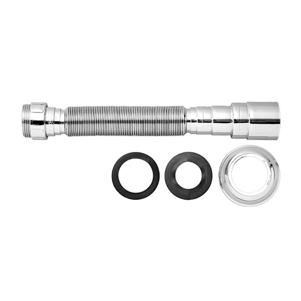 Diseñado para brindar eficiencia y adaptabilidad en instalaciones sanitarias, este tubo de extensión con sifón integrado ofrece una solución práctica y duradera para conexiones de inodoros o lavatorios. Su formato corrugado permite una instalación flexible incluso en espacios reducidos o de difícil acceso, manteniendo un acabado prolijo gracias a su recubrimiento cromado.