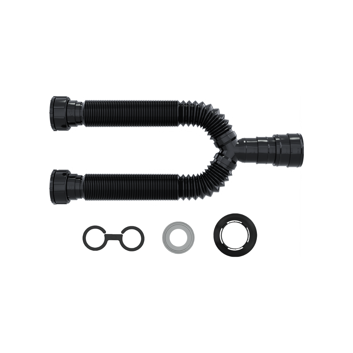 El sifón universal Blukit con doble extensión es la mejor opción para quienes buscan un producto versátil y práctico para drenar aguas residuales de fregaderos de dos cubetas. Fabricado en polipropileno, un plástico ultrarresistente que soporta temperaturas extremas, con acabado en blanco, gris, negro o cromado e interior antiadherente, su uso adecuado garantiza un ambiente libre de olores. El cuerpo totalmente sifonado permite ajustes para adaptarse a las diferencias de altura y distancia entre el desagüe y el fregadero.