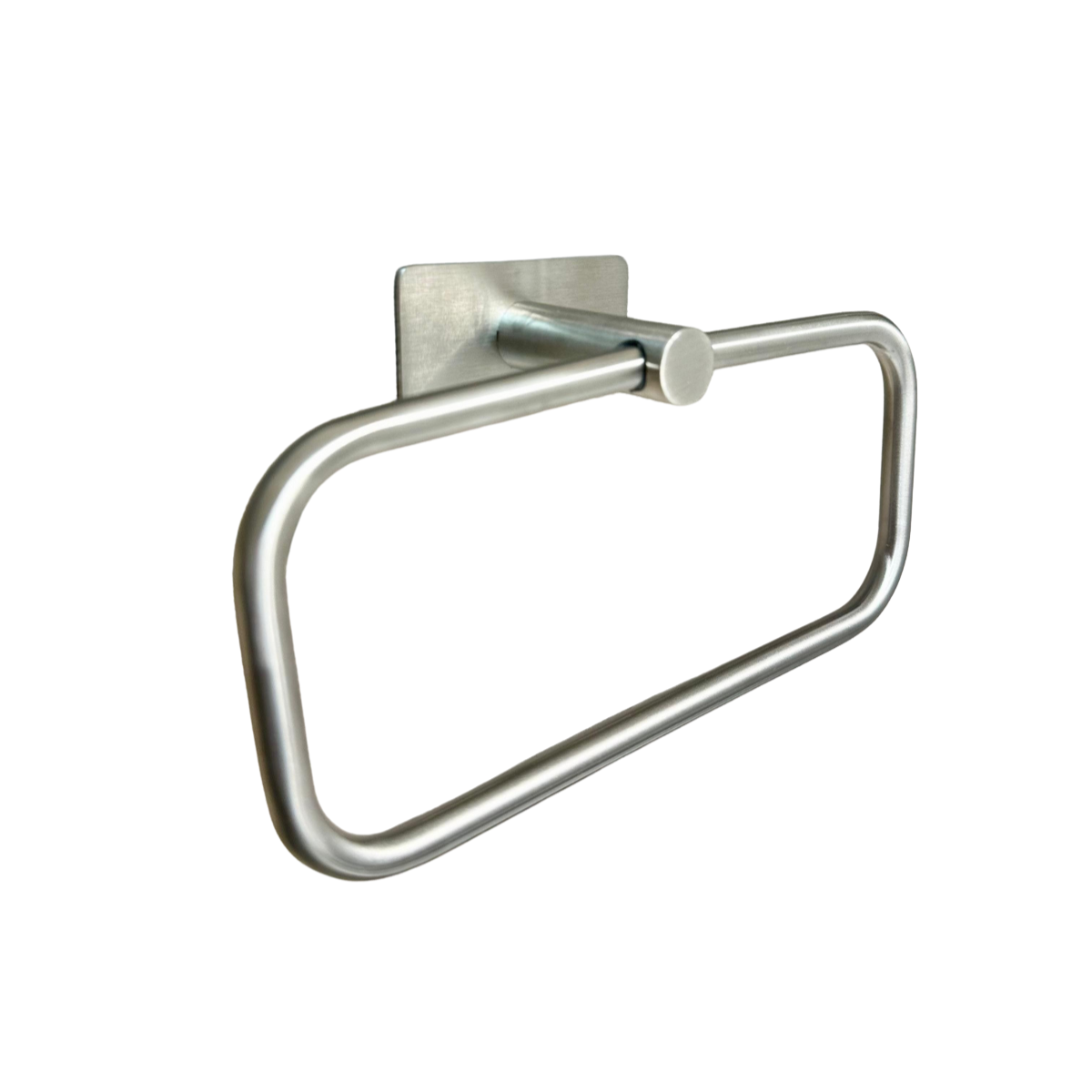 Características- Fabricado en acero inoxidable: resistente al óxido y de larga vida útil.- Terminación satinada: acabado moderno, discreto y fácil de limpiar.- Sistema autoadhesivo: instalación rápida y sin herramientas.- Diseño compacto y elegante: ideal para baños pequeños o medianos.- Aro móvil: permite colgar la toalla cómodamente y con libertad de movimiento.