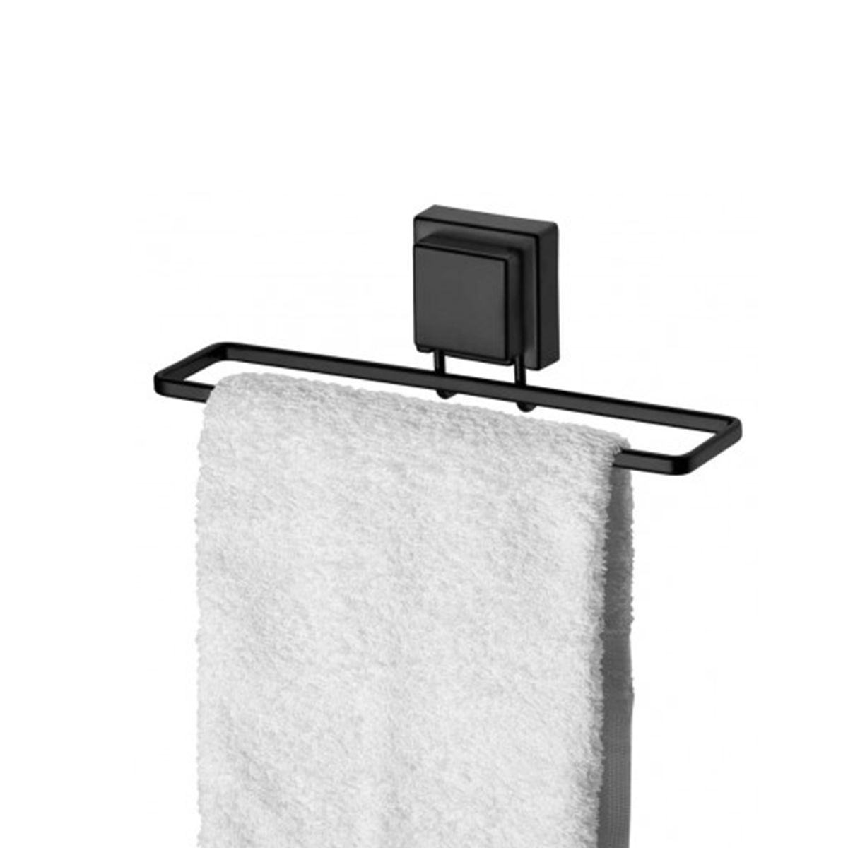 Una toalla bonita no basta. ¡Un toallero es esencial para una decoración completa!Las toallas de mano y de rostro resaltan aún más en un toallero elegante y elegante. El acero Piatina (de forma plana) añade el toque especial que su baño y tocador merecen. Suacabado liso y mate. El recubrimiento en polvo de la pieza garantiza una excelente protección contra la corrosión y una alta resistencia a los impactos.Instalación:Correcta: superficies lisas, brillantes y completamente planas, como vidrio, espejos, azulejos, cerámica no porosa, pinturas lisas y brillantes (epoxi) y laminados.Incorrecta: superficies curvas, mate o porosas, como papel tapiz, madera, paredes de cemento, mármol, granito, etc.Medidas: Fondo: 7,5cm / Ancho: 25cm / Alto: 8cm / Peso: 0,207kgMateria prima: Acero al carbono + Plástico + CauchoColor/Acabado: Negro mateCapacidad: 3 kgConsejos de uso:- Para la limpieza periódica, recomendamos utilizar un paño suave, agua y jabón neutro.- No utilice nunca materiales abrasivos, lana de acero, esponjas ásperas, disolventes o productos químicos corrosivos (cloro, lejía).Importante:- Retirar periódicamente (cada 3 meses) y volver a aplicar según las instrucciones de montaje.- Nunca utilice este producto con un peso superior al indicado en el embalaje.- No utilice este producto para guardar objetos frágiles o valiosos.- No utilice llaves, cuchillos ni objetos afilados para retirar el producto de la superficie.- No aplicar sobre superficies con pintura reciente (menos de 30 días).