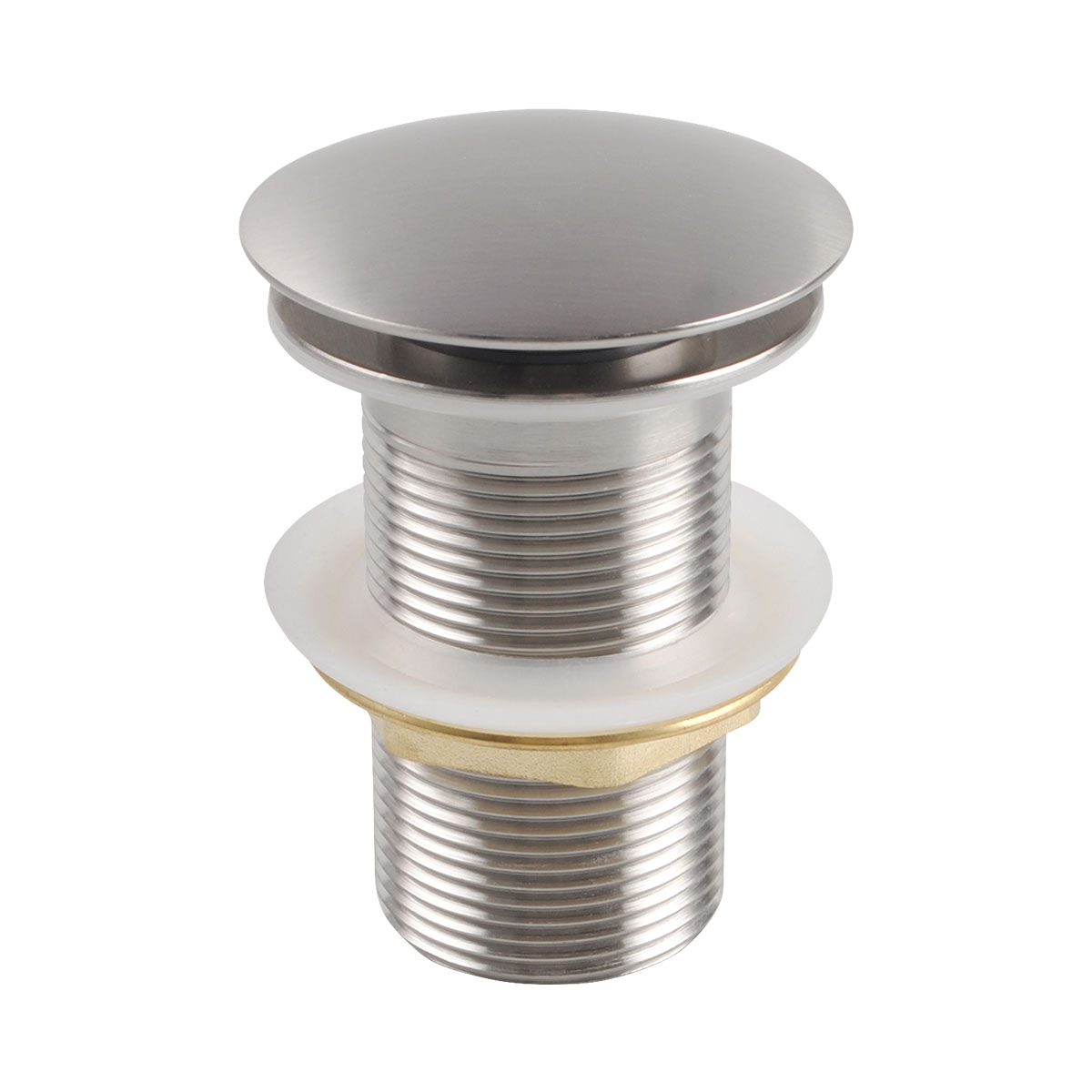 Características - Sistema Click Clack: Abrí y cerrá el paso del agua con un simple toque, sin necesidad de girar ni usar tapones separados.- Fabricada en acero inoxidable 304: Alta resistencia a la corrosión, ideal para ambientes húmedos como baños y lavabos.- Acabado satinado: Superficie elegante y fácil de limpiar, que aporta un toque moderno y sobrio al conjunto.- Medida estándar de 1 1/4": Compatible con la mayoría de los lavatorios sin rebosadero.- Apta para lavatorios sin desborde: Pensada para modelos que no tienen rebalse, asegurando un sellado eficaz.