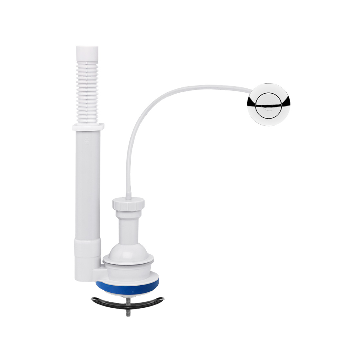Mecanismo de salida para tanque de inodoro de una sola pieza.Botón de disparo: Cromo.Material: Plásticos de ingeniería, acero inoxidable 304 y elastómeros.Altura: Ajustable de 280 a 395 mm.Actuación: Frontal, lateral o superior.