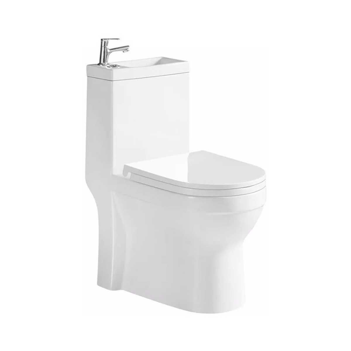 Inodoro con mochila y lavatorio integrado Dmc modelo Unic, salida únicamente a la pared, color blanco.